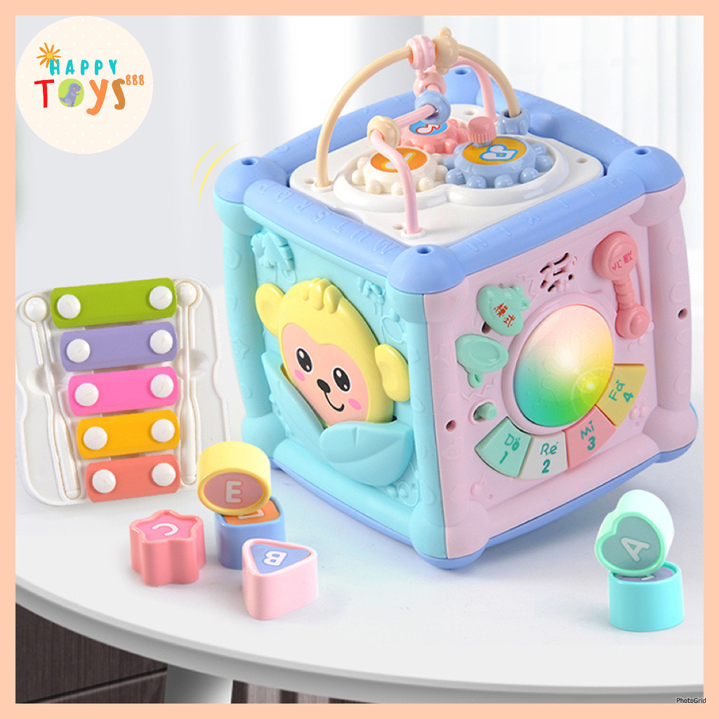 HAPPYTOYS.888 #B89 7 in 1 Wisdom Busy Box Mainan Edukasi Anak Bayi Kotak Musik Baby Rattle Puzzle Abjad Sensorik Motorik