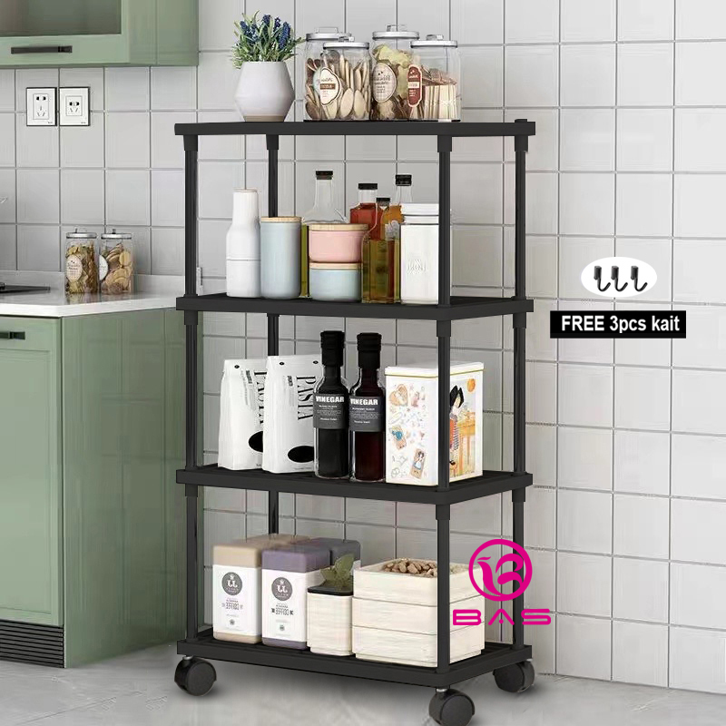 BAS rak susun serbaguna rak dapur plastik rak kamar mandi 4 tingkat free 3 cantolan dengan roda