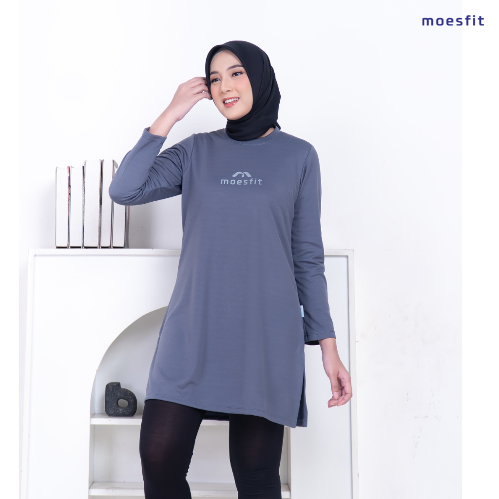Baju Olahraga Tunik Atasan Sport Wanita Muslimah Hitam Dry Fit