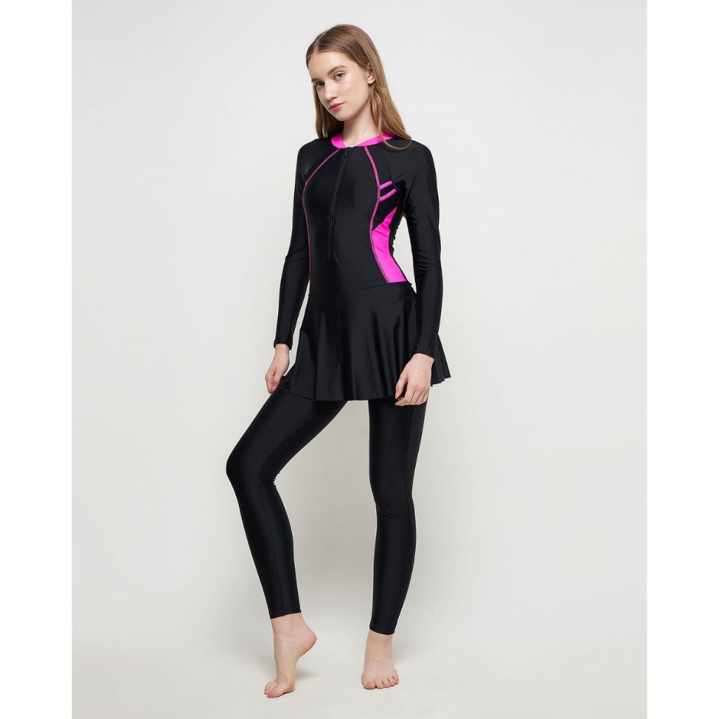 Baju renang dewasa hijab muslim lengan celana panjang polos nyambung murah antiuv 39050 39080 pink