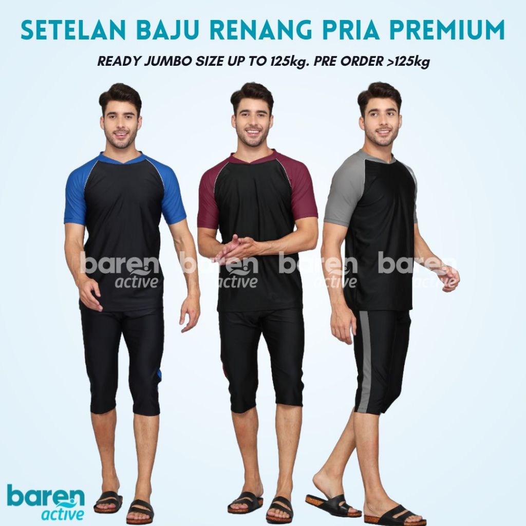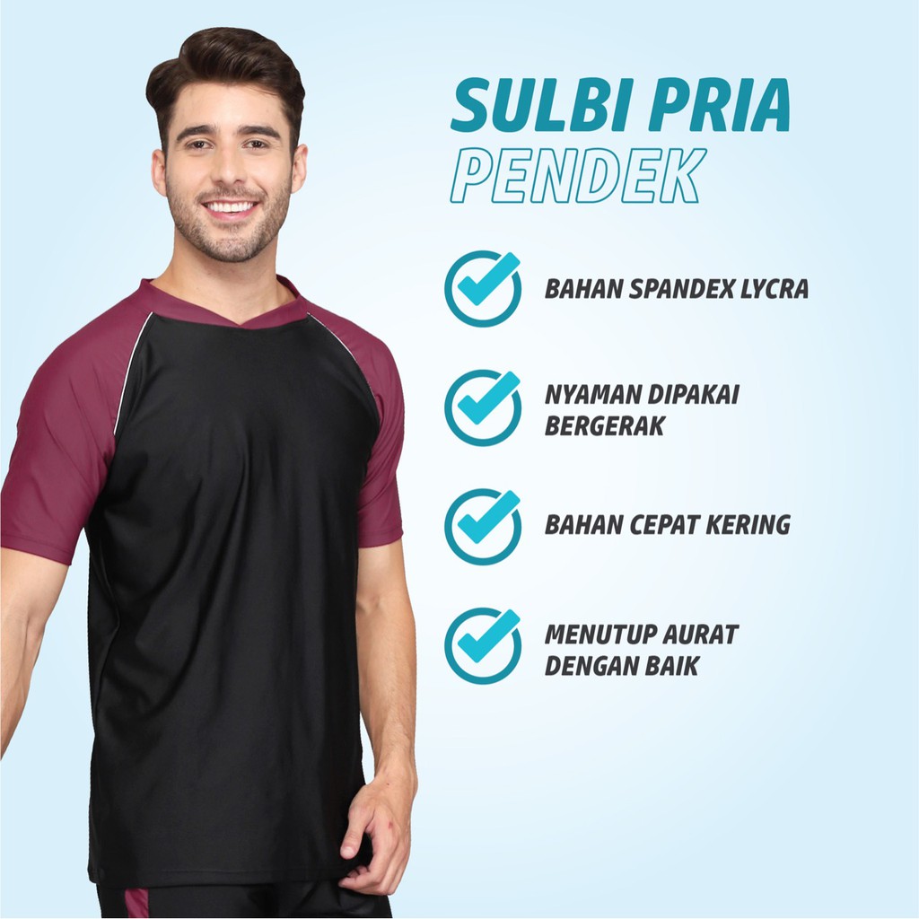 Baju Renang Pria PENDEK Sulbi Setelan Jumbo Diving Polos Spandex Nylon Men Swimwear Swimsuit