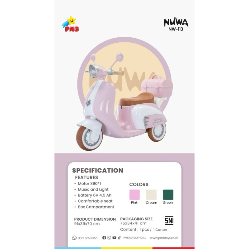 Motor Aki anak Vespa PMB NW113 Exotic 2242 Volta 5022 2237 lite Sepeda Listrik Cas casan Klasik skuter Scooter