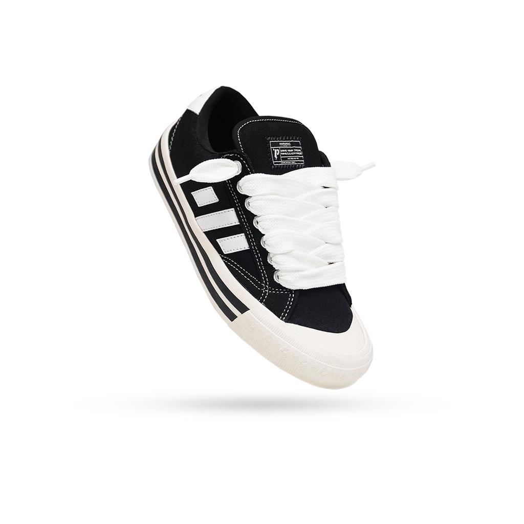 Paparos Sepatu Sneakers Pria Montage Series Black White Model Gemuk Bulky Canvas Casual Shoes Hitam