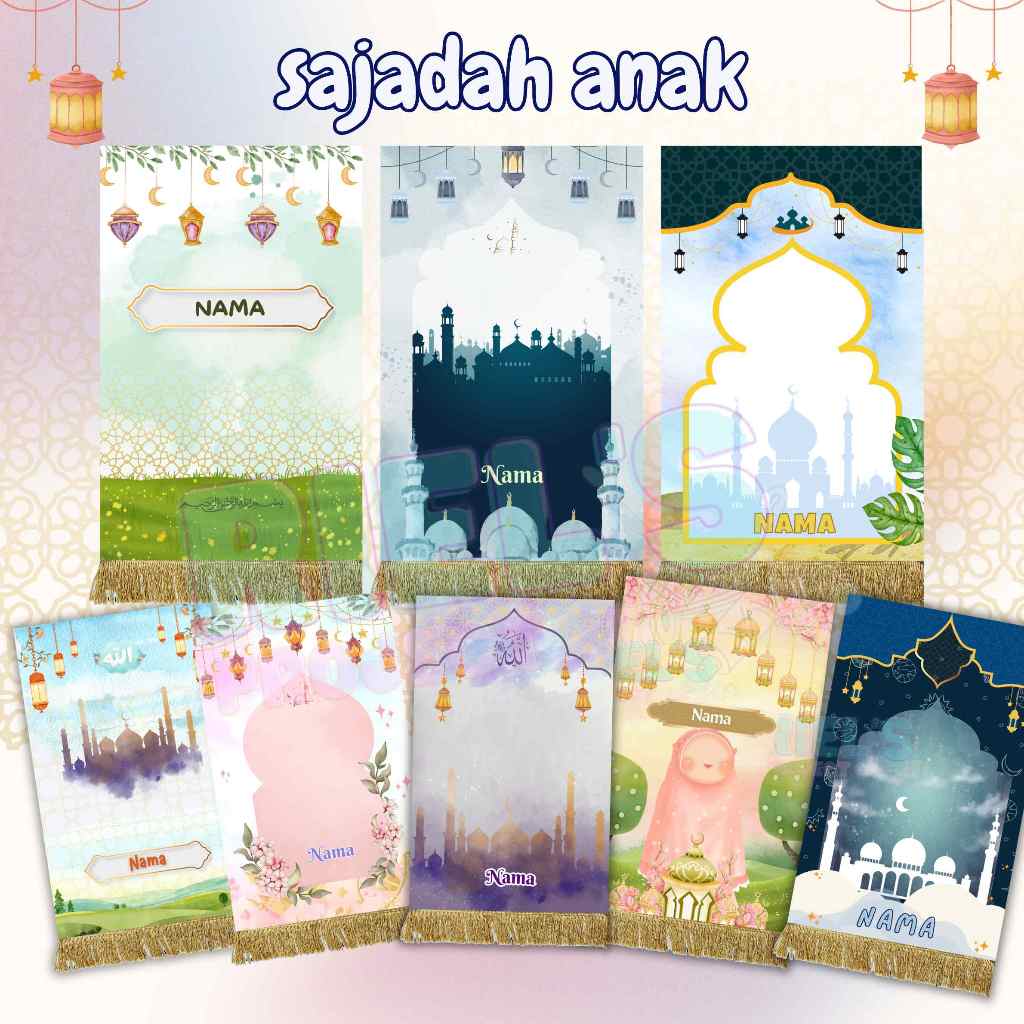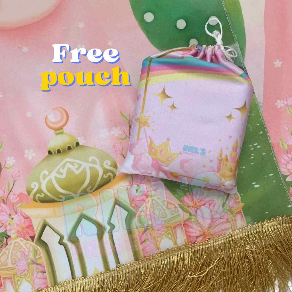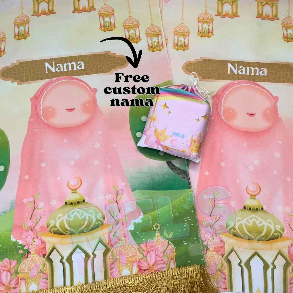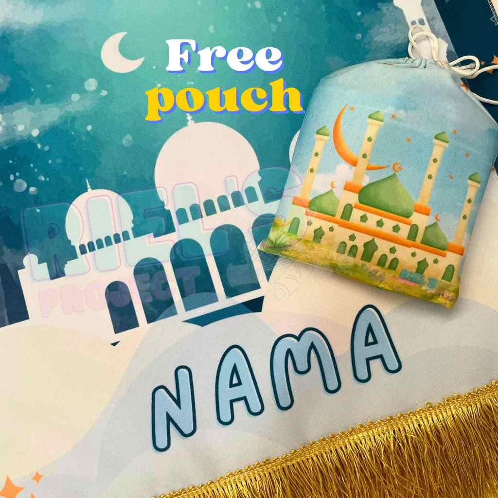 Sajadah Anak Custom Nama Gratis Pouch, Sajadah Travel 47 X 78