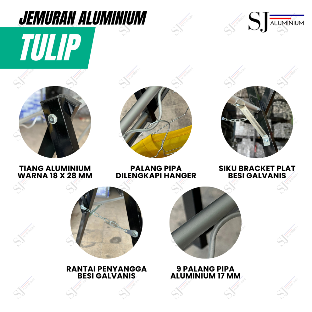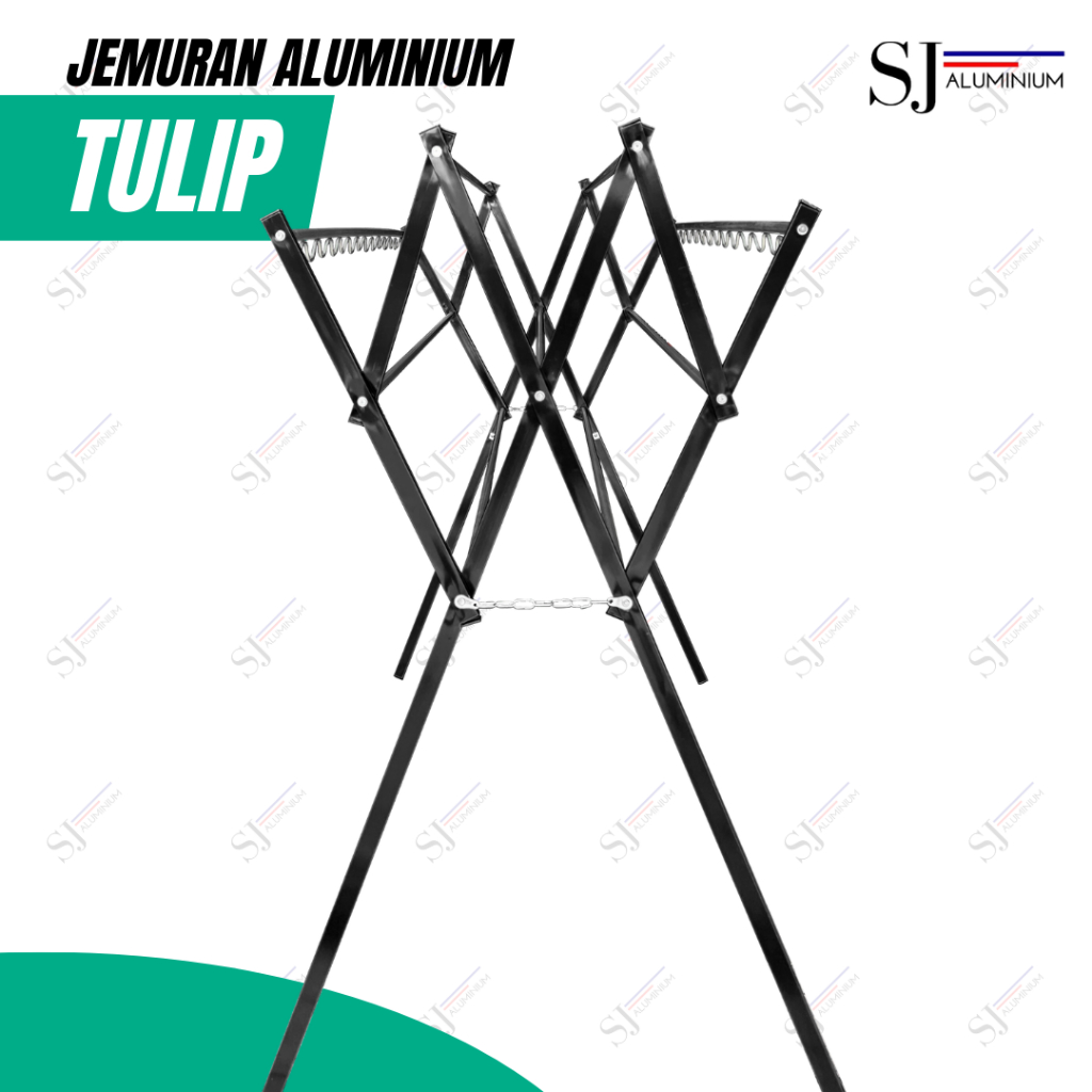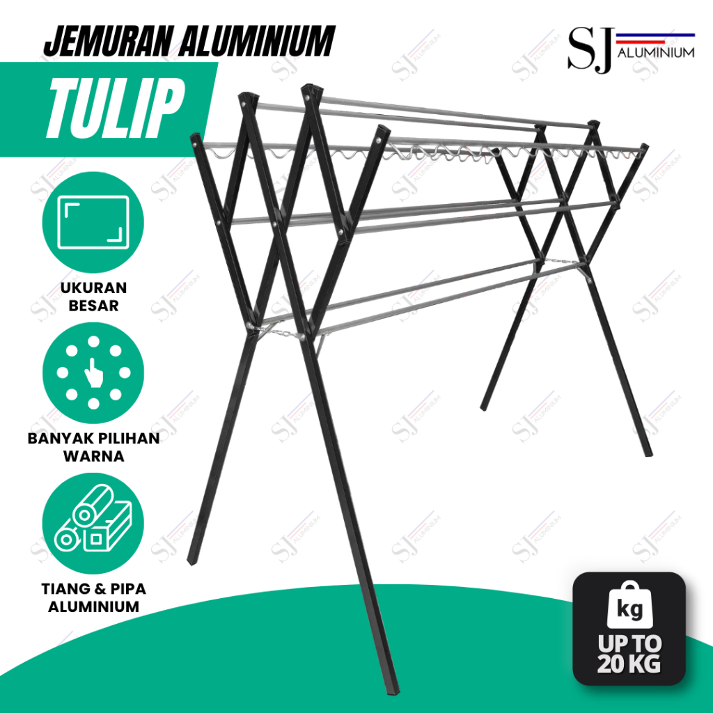 [TULIP] Jemuran Pakaian & Baju Aluminium / Rak Handuk Lipat Gantung Portable / Jemuran Bayi Warna Hitam - 180 CM / 1,8 M