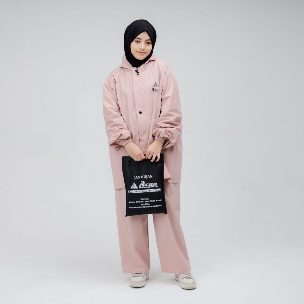 Jas Hujan,Terbaik RAINCOAT Acua Anti Rembes Berkualitas Premuim Bahan Tebal Lentur Moca Hitam
