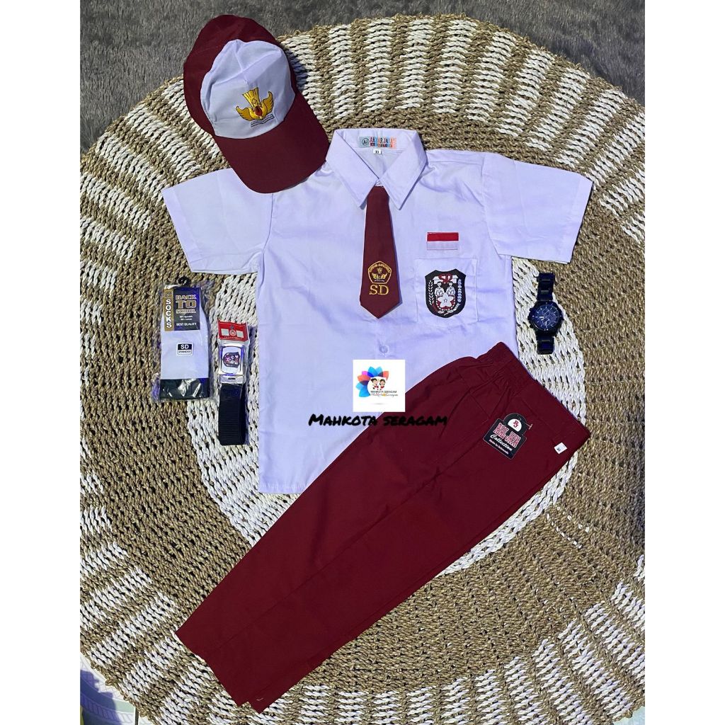 Setelan Super Lengkap Seragam Sekolah SD LAKI BAJU PENDEK CELANA PANJANG Cowok