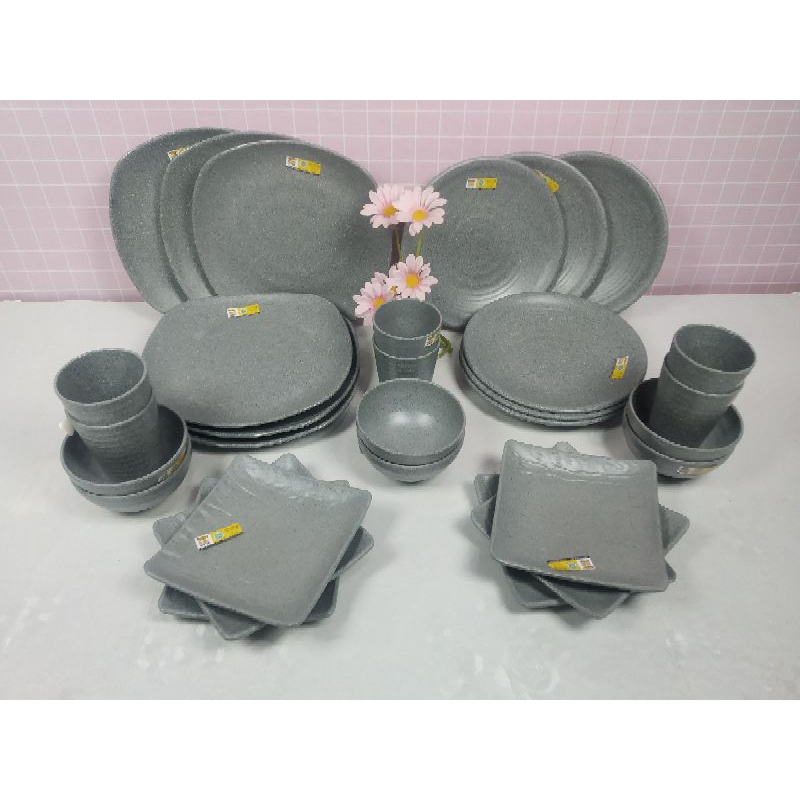 Paket Melamin Japan Stone isi 30pcs (P2308) en dragon - Ready warna abu abu, hitam