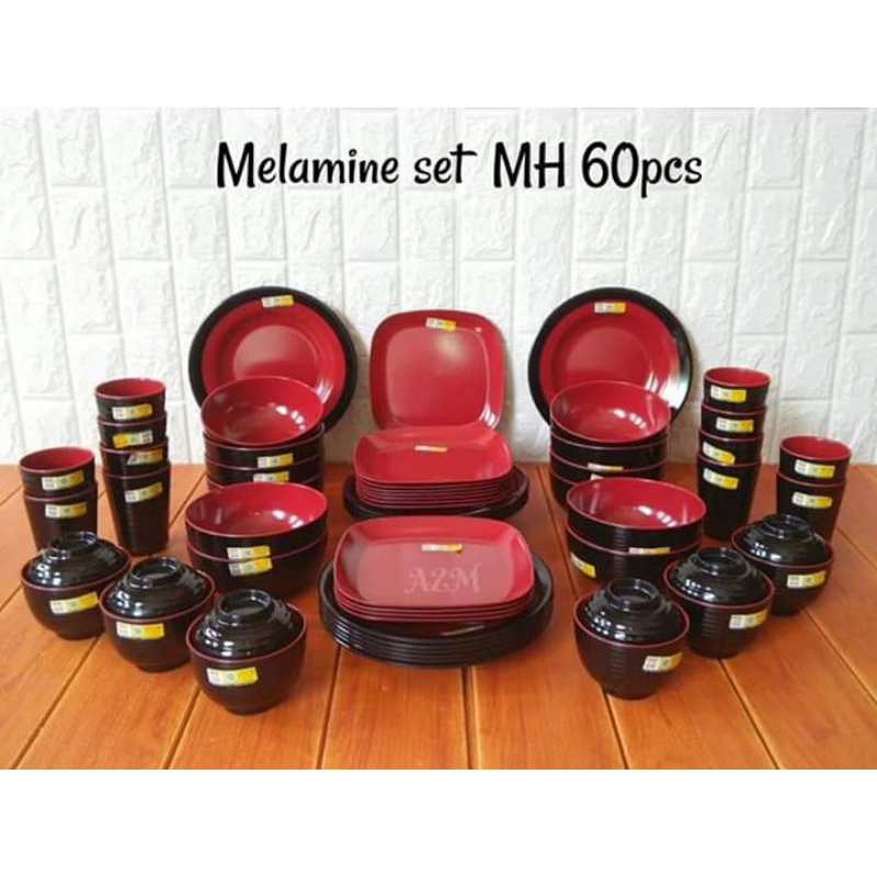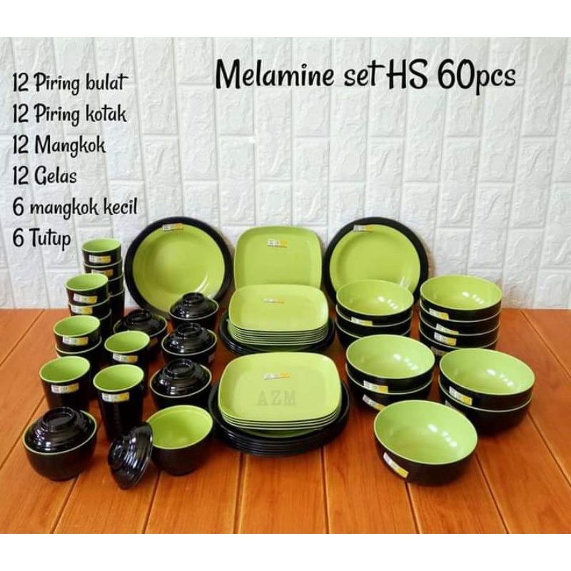 Set melamin 60pcs paket lusinan en dragon - hijau lumut