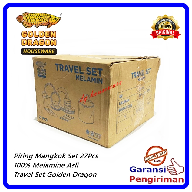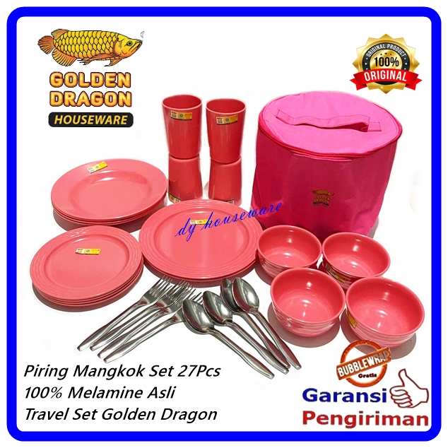 Piring Mangkok Set Melamine 27Pcs Piring Makan Gelas Minum Mangkok Melamin Travel Set en Dragon