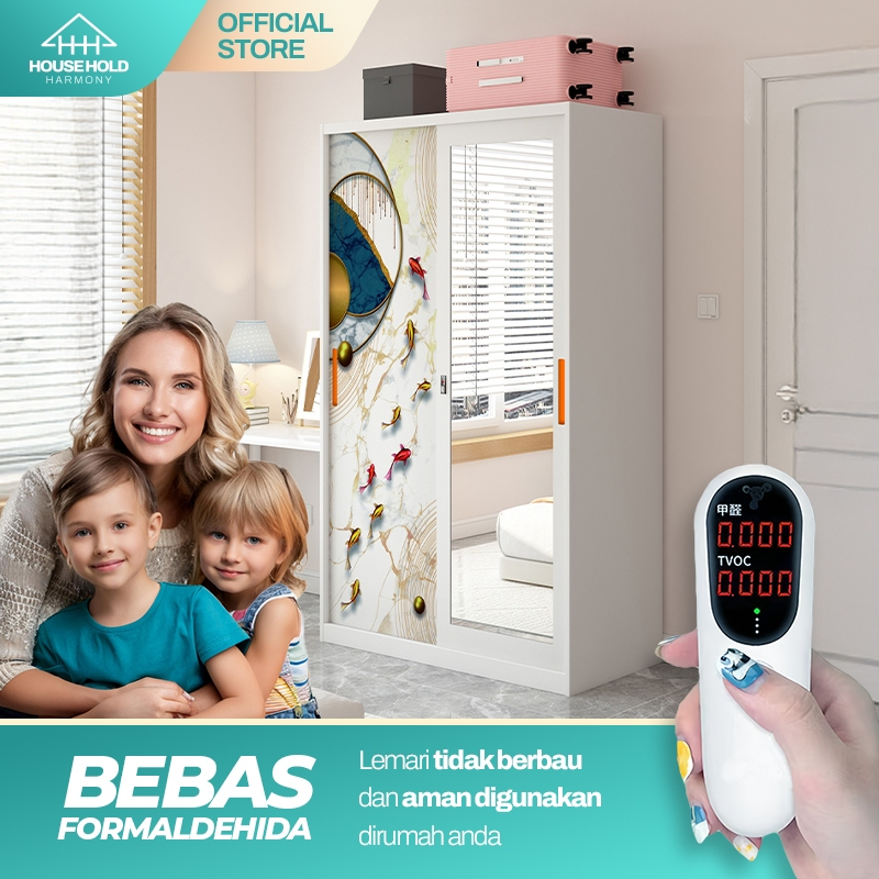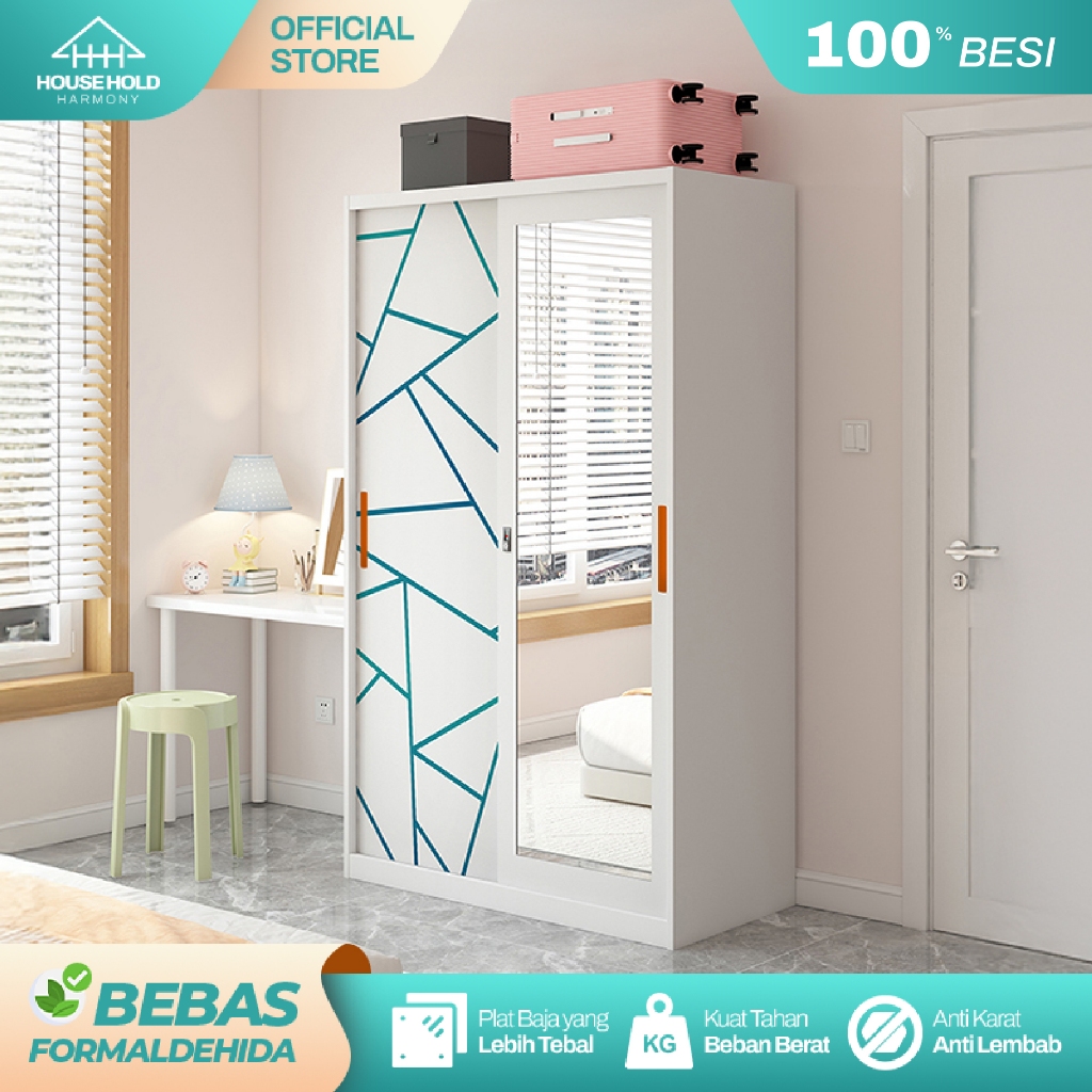 Lemari Besi Sliding 2 Pintu Lemari Pakaian Besi Lemari Baju Minimalis Motif Plat Besi Anti Karat