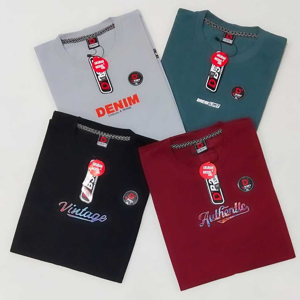 D'B35T PAKET 4 PCS KAOS DISTRO PRIA MOTIF SIMPLE M-L-XL-XXL-XXXL SEMI KATUN 24S