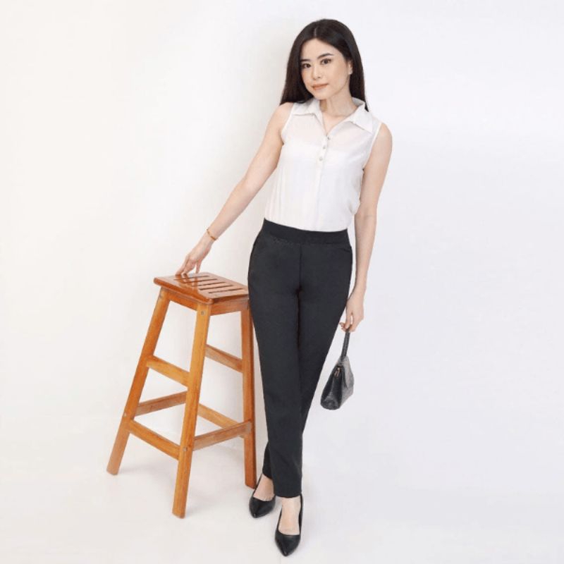 PETITE - Loose Pants High waist Celana Kerja Wanita Kulot Abu