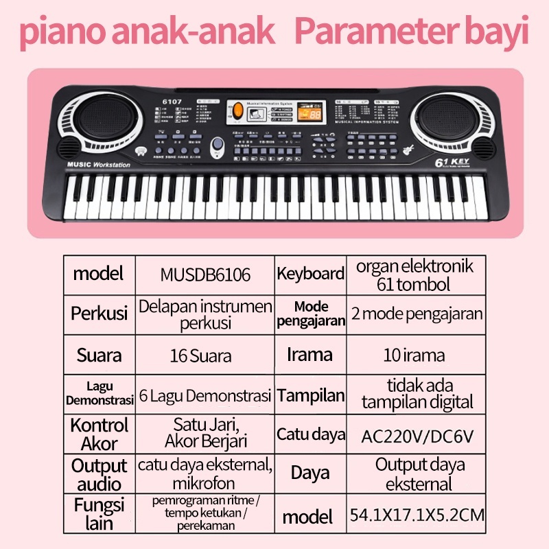 Piano 61-key Piano Elektronik Pemula Piano Mainan Anak-Anak Smart Piano 6106