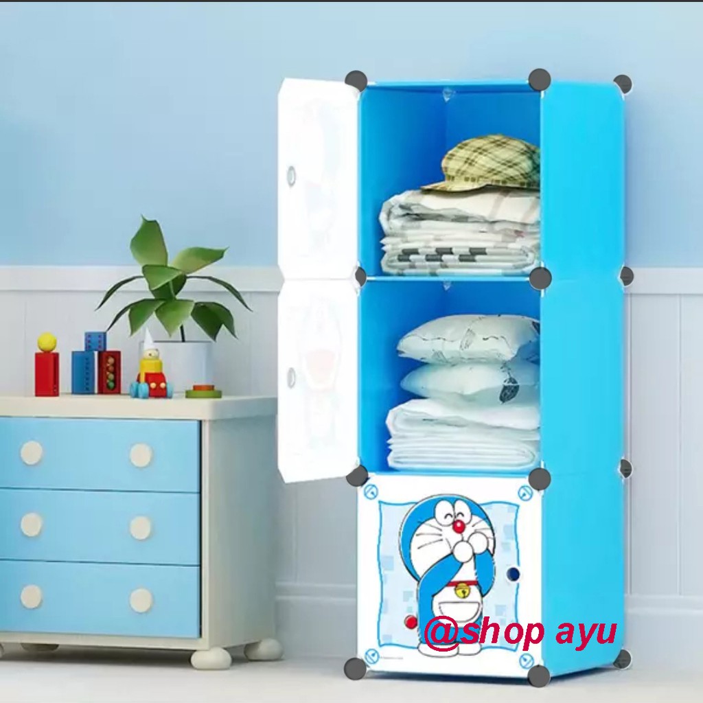 Lemari pakaian lemari plastik lemari baju anak rak buku rak topi 3 kotak/pintu/susun