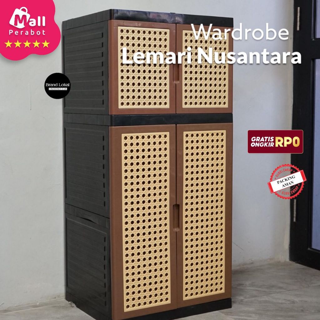 Mall Perabot Lokal | Lemari Pakaian Java 3 Susun Wardrobe D14M0NDS Plastik Persegi | Rak Baju Tingkat Jumbo Pintu Serbaguna Murah