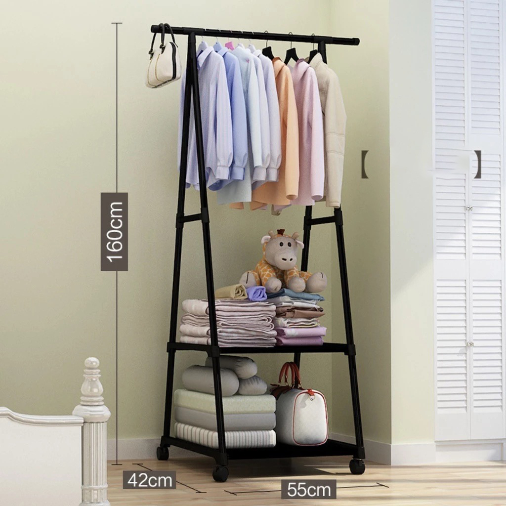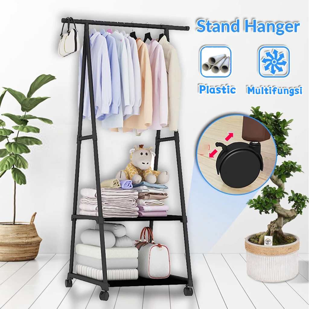 Triangle Stand Hanger - Gantungan Pakaian Tiang Berdiri Dengan 4 Roda Rak