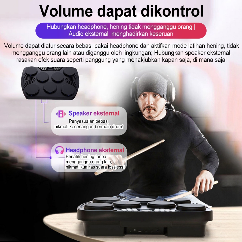 Digital Portabel Drum Roll Drum Elektronik Perkusi Elektronik Drum Kit Drum Jazz 7 Pad Drum dengan metronom built-in