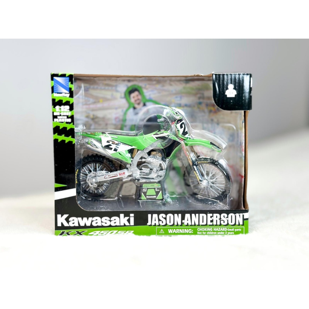 NewRay 58413 Diecast Motorcycles Kawasaki KX 450SR Dirt Bike Jason Anderson #21 1/12 Scale
