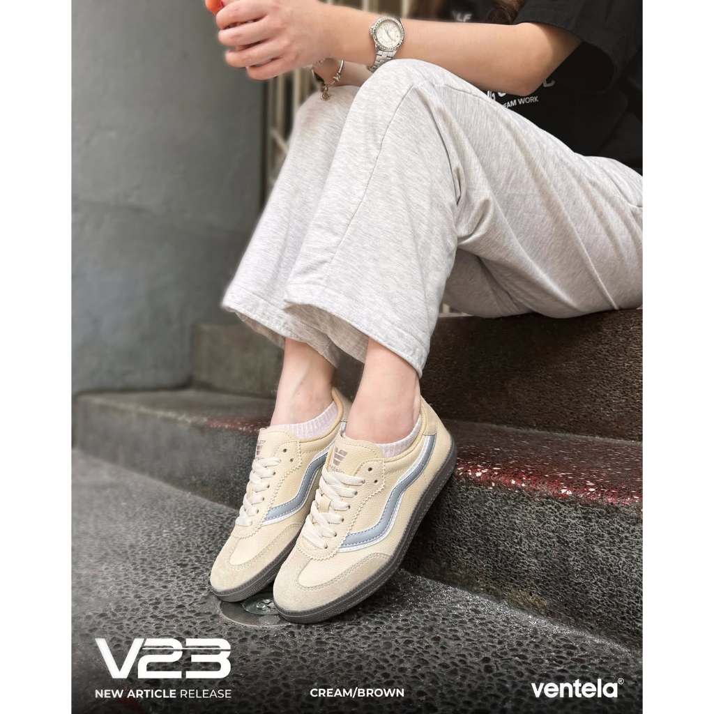 Ventela V23 Low Cream Brown - Sepatu Pria Sneakers Casual