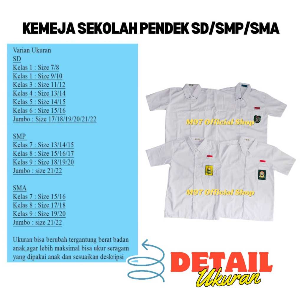 Seragam Sekolah Baju Kemeja Atasan Sekolah SD SMP SMA Kemeja Putih Lengan PENDEK Bendera Logo Bordir