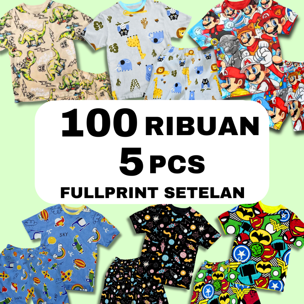 Paket Usaha Hemat Baju Kaos Setelan Harian Anak Laki Laki Distro Karakter Kartun Umur 1 - 10 Tahun