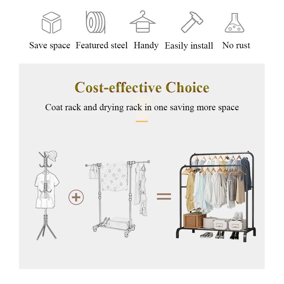 SHENAR BIG DOUBLE STAND HANGER MULIG RAK GANTUNG BAJU GAWANGAN JEMURAN DOUBLE POLE BIG STAND HANGER