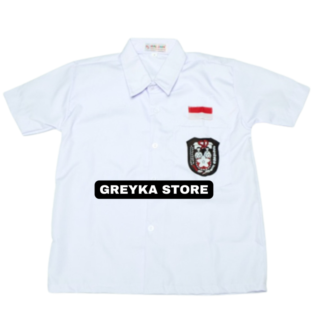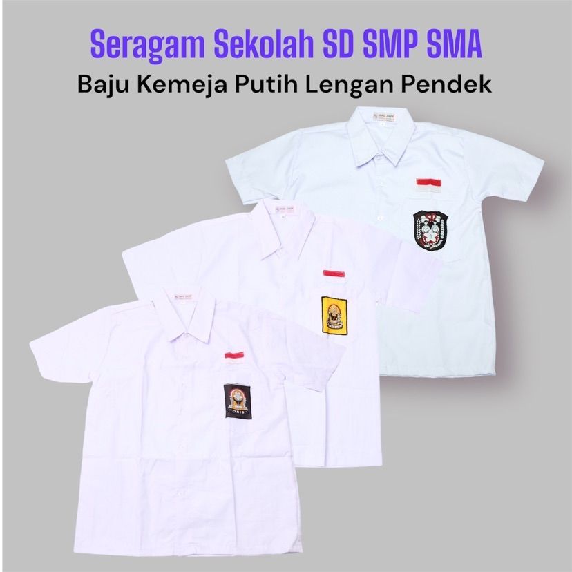 Baju Putih Seragam Sekolah SD SMP SMA Kemeja Putih Lengan PENDEK Putih Tebal Oxford Logo Bordir