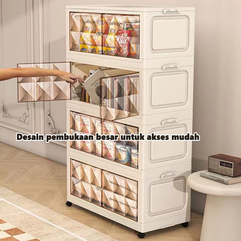 Rak Kabinet Susun Lipat(Lemari Lipat Tidak Perlu Dirakit)Rak Serbaguna Wardrobe Storage Lemari Pakaian Ekstra Besar Katrol Senyap