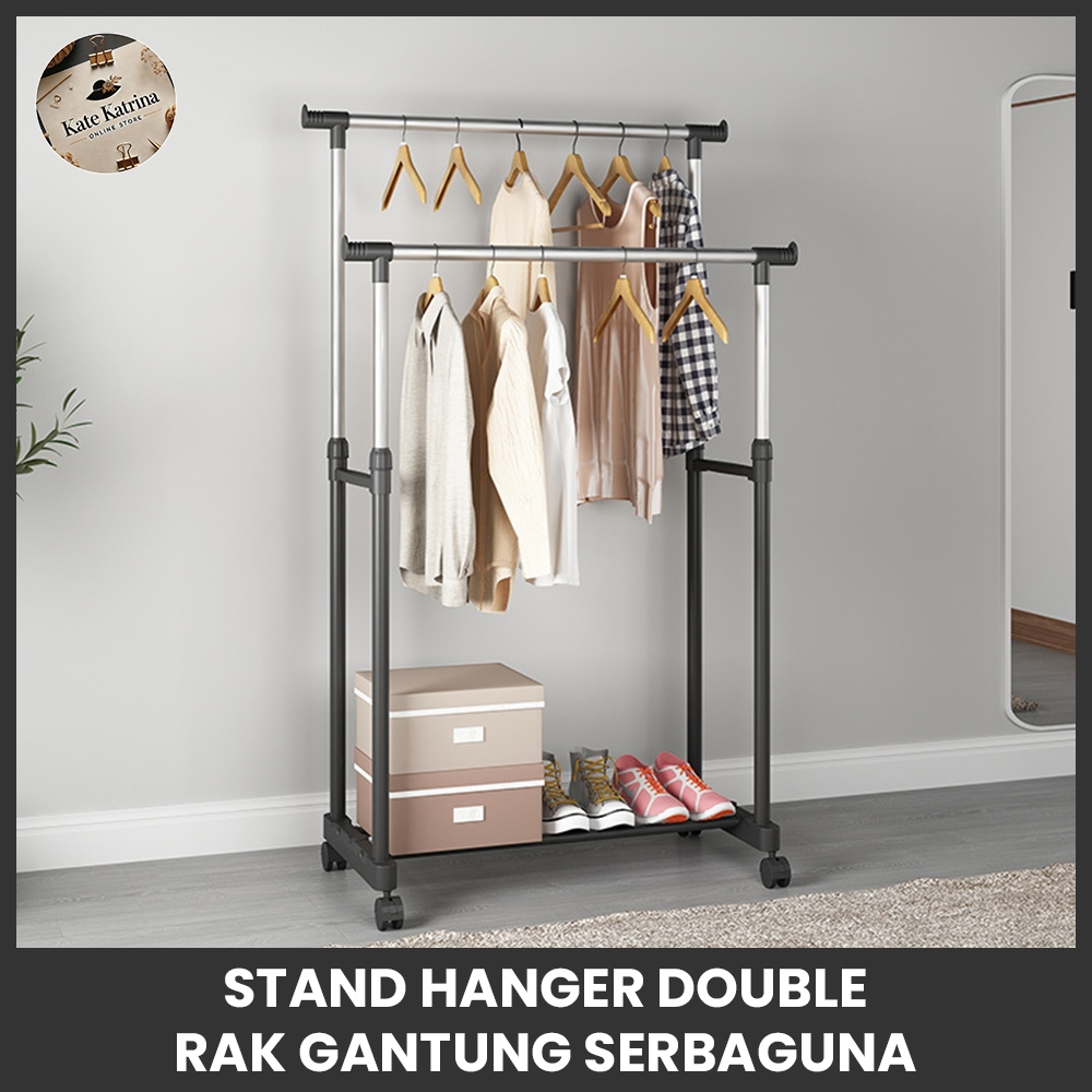 KK (LIVE DISKON25 PERSEN) STAND HANGER DOUBLE RAK GANTUNGAN SERBAGUNA