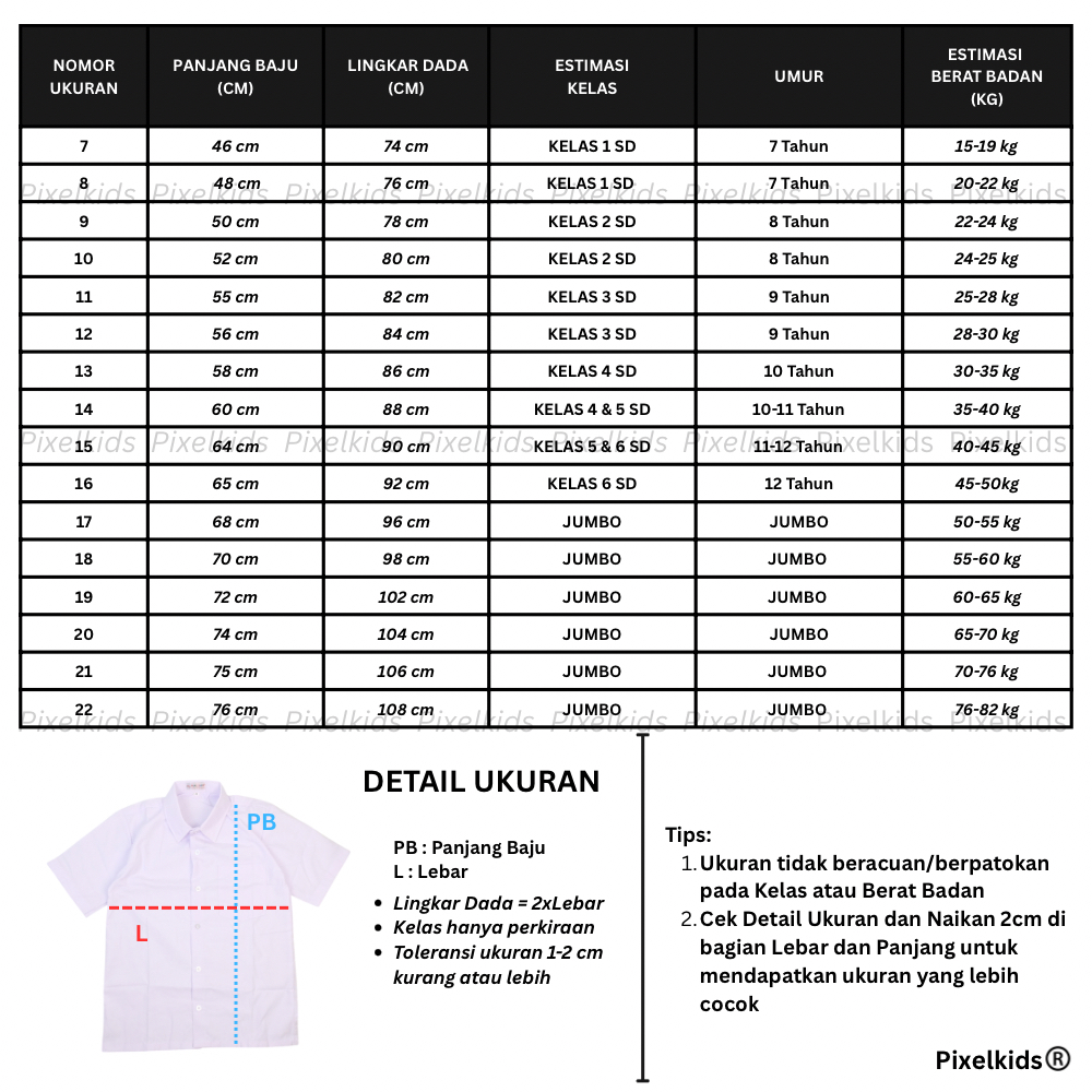Kemeja Putih Lengan Panjang POLOS Baju Seragam Sekolah SD SMP SMA SMK Seragam Kerja | SERAGAM SEKOLAH | PIXEL