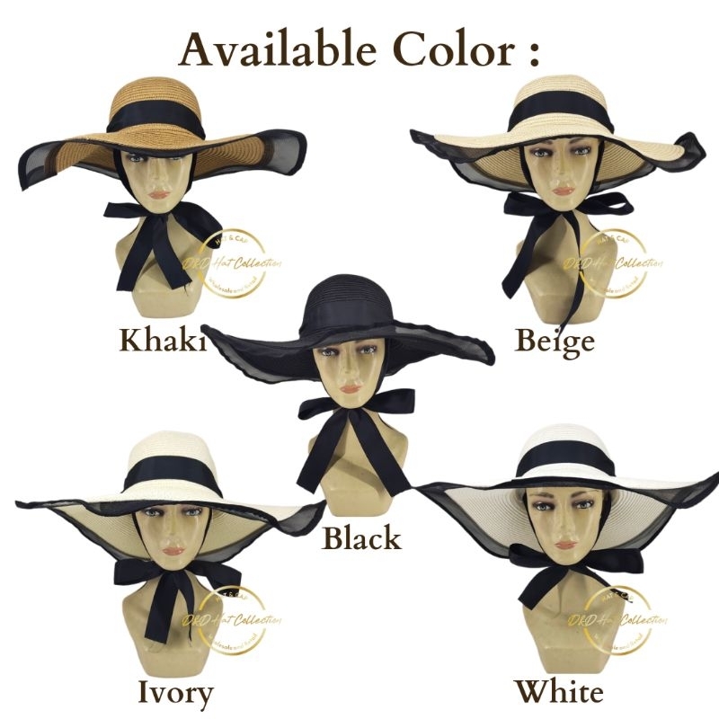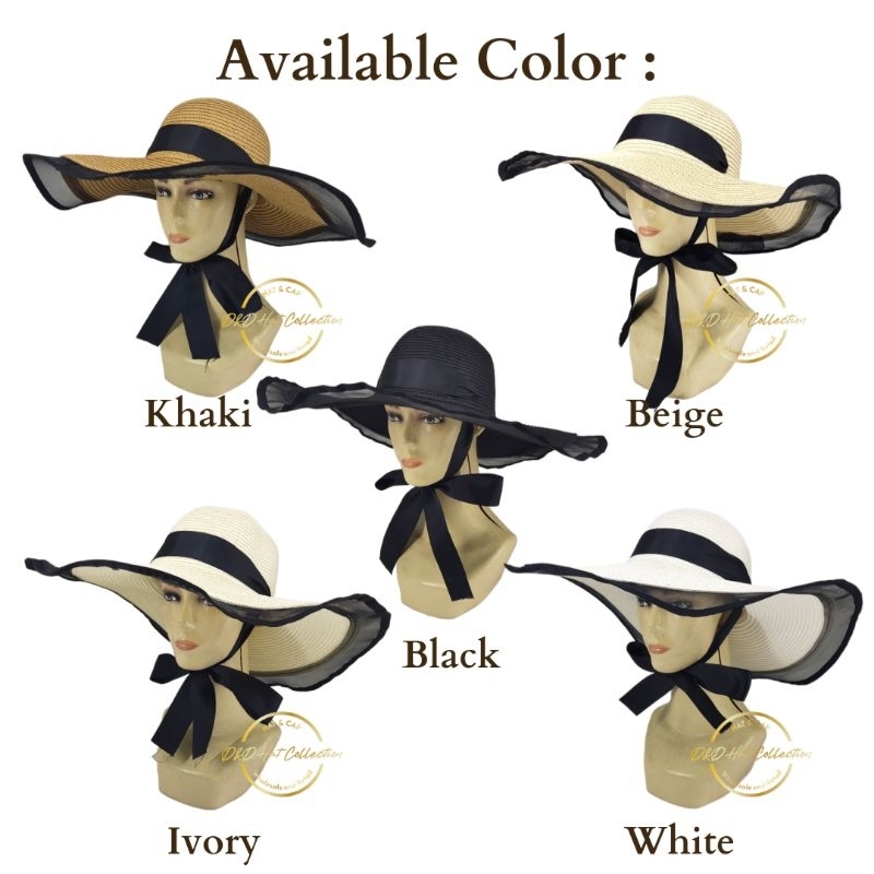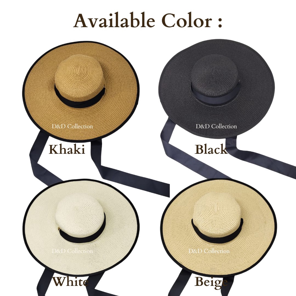Topi Pantai Lebar Lis Hitam Pita Leher