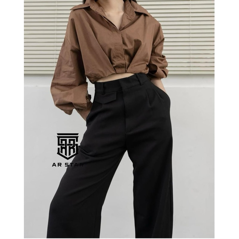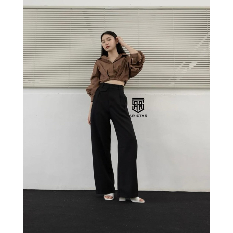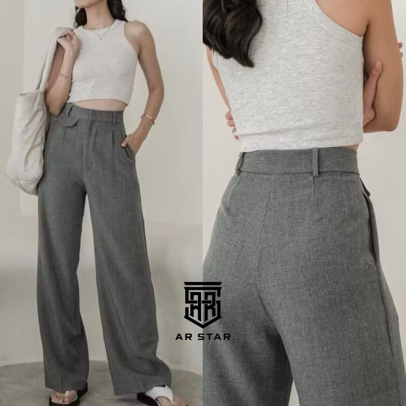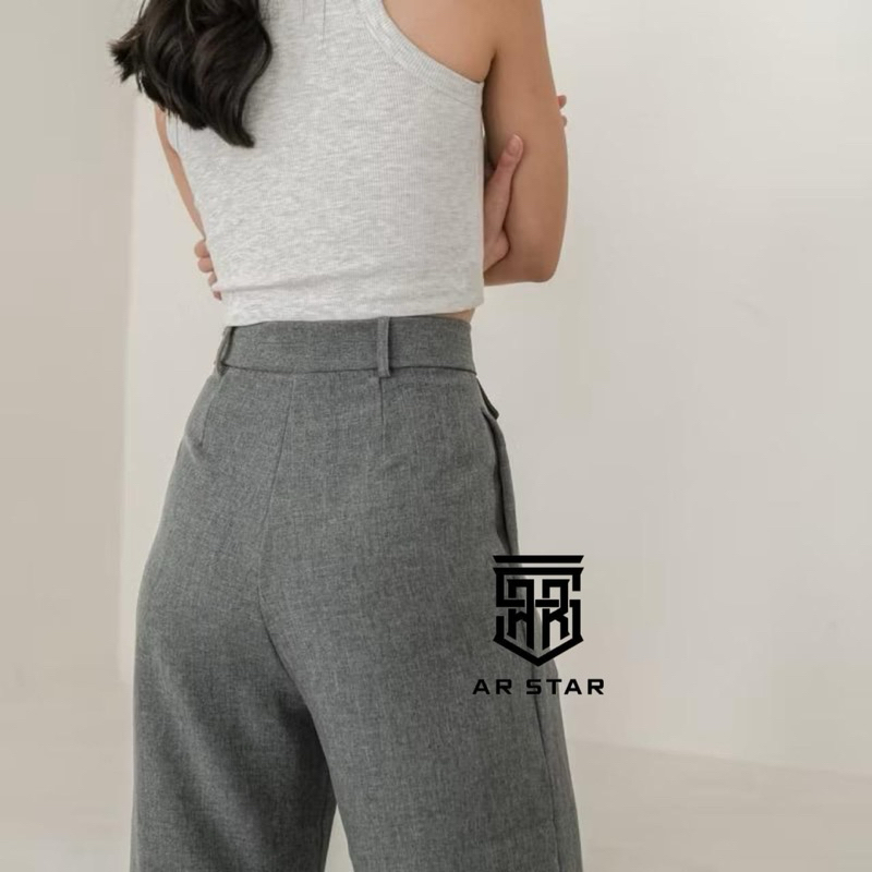 AR STAR - Oro Pants Highwaist Semi Wool - Celana Kerja Wanita Loose Casual