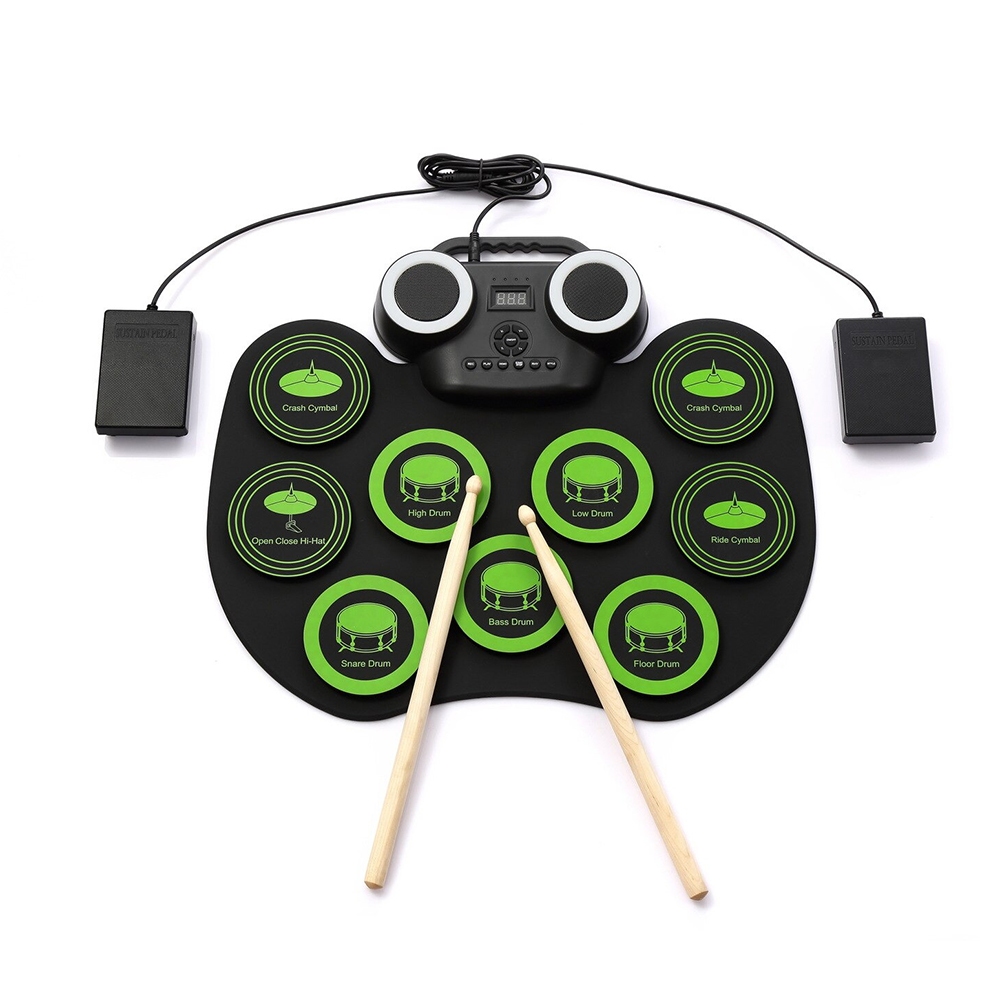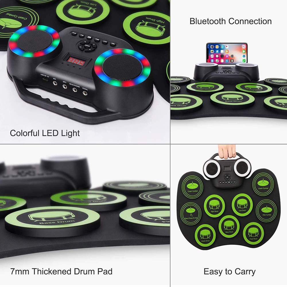Electronic Digital Drum Kit 9 Pads Folding 1200mAh Latihan belajar Anak Universal Kursus Drum Sembilan Bantalan Drum Built-in Speaker Kencang dan Jernih Desain Portabel G6009