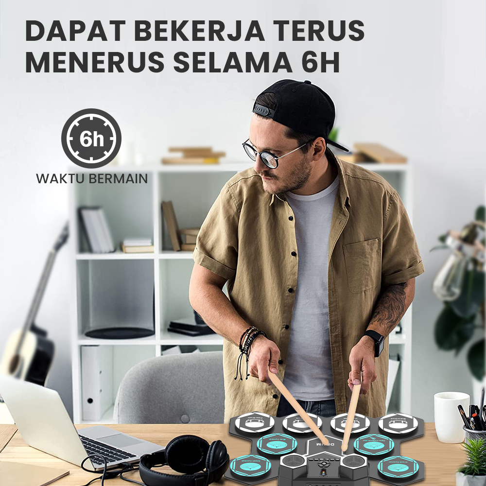 Portable electronic drum desktop drum hand roll electronic drum hadir dengan speaker definisi tinggi dan mendukung koneksi USB MIDI