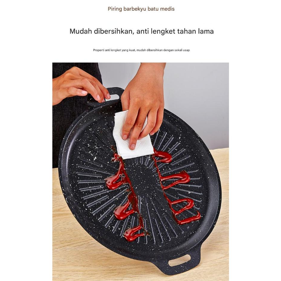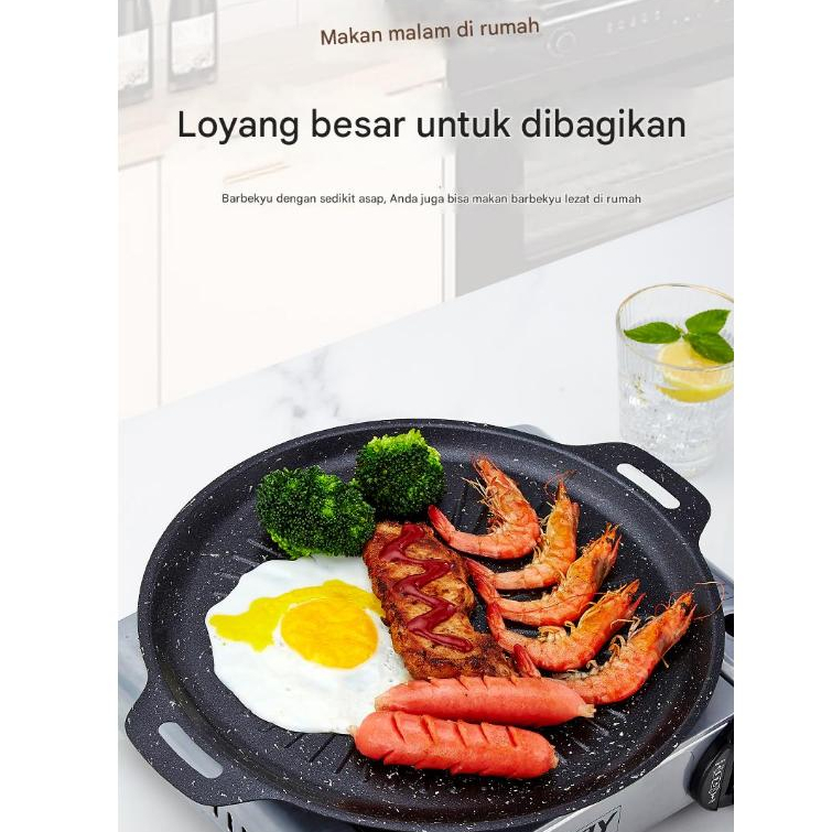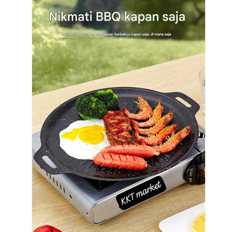 KKT wajan panggang grill pan BBQ 34cm/32cm bulat anti lengket wajan korea