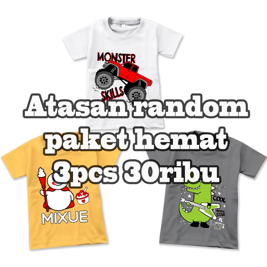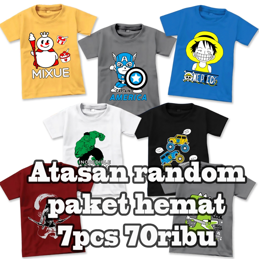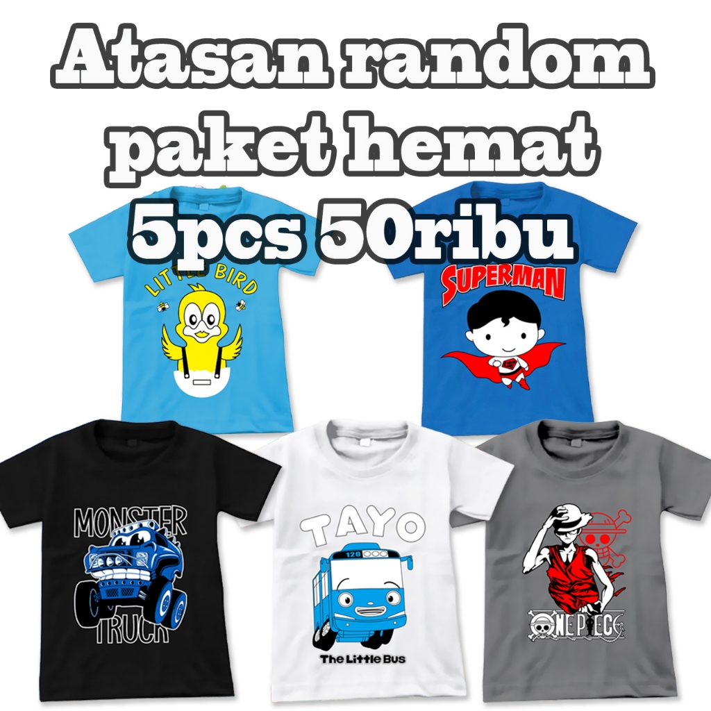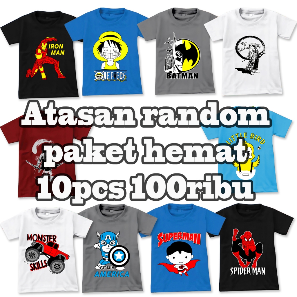 KAOS ATASAN ANAK PAKET HEMAT 10PCS 100.000/ KAOS ANAK RANDOM WARNA & MOTIF SIZE S-XXL