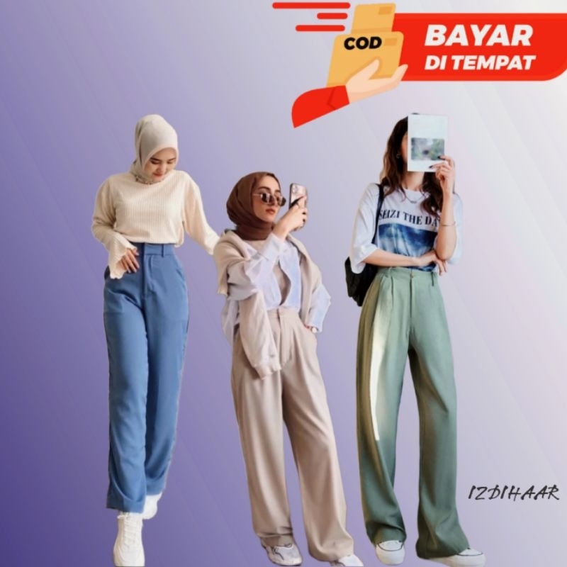 celana loose pants trousers wanita highwaist, celana wanita dewasa terbaru dan terlaris
