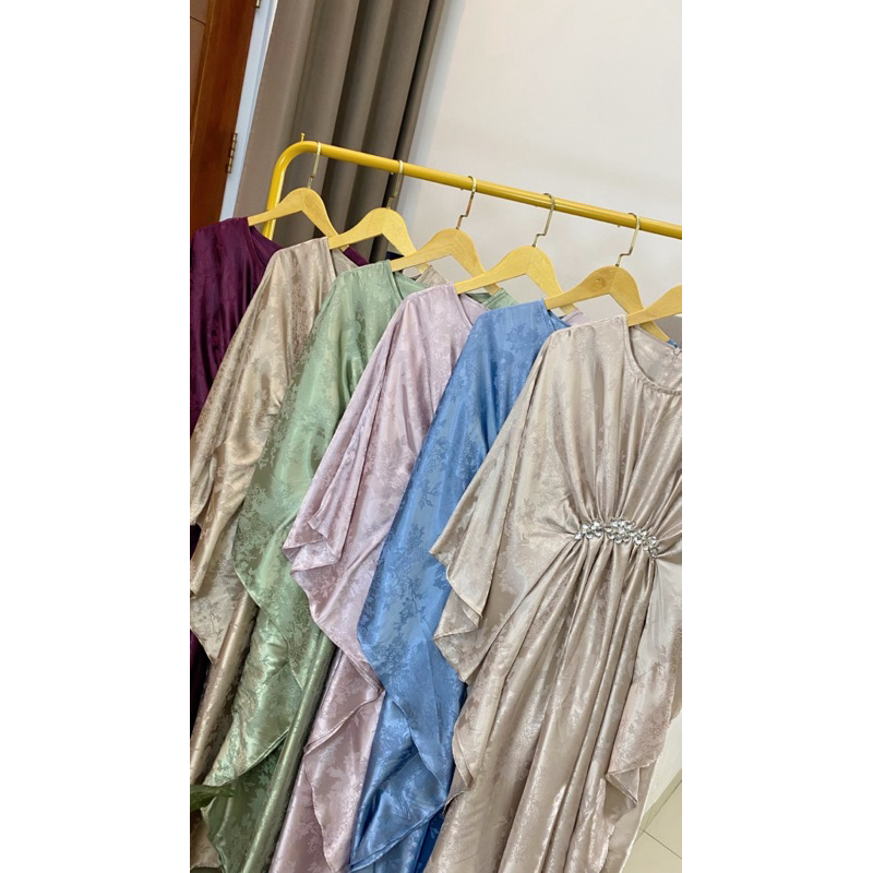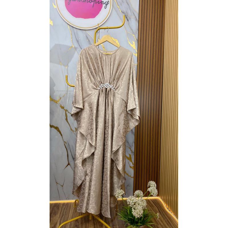 Saninda Kaftan Jaqcuard Silk Emboss Gamis Abaya Baju Lebaran Pesta Kondangan Mewah Fashion Wanita