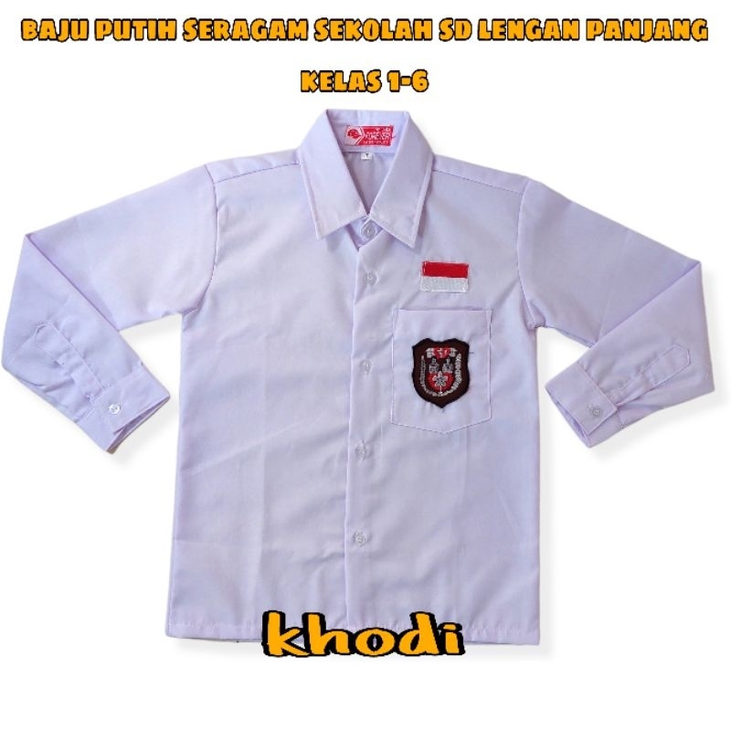 setelan seragam merah putih sd perempuan lengan panjang rok panjang merah pakaian seragam sekolah SD