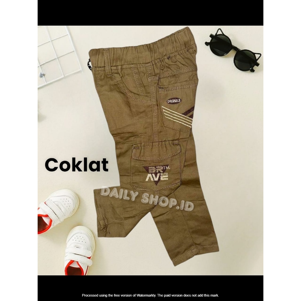 Celana Katun Cargo Panjang Anak Laki-laki Pinggang Full Karet Usia Anak 1-12 Tahun Bahan Katun