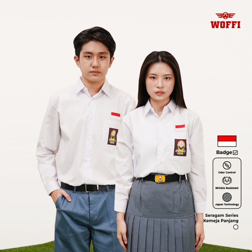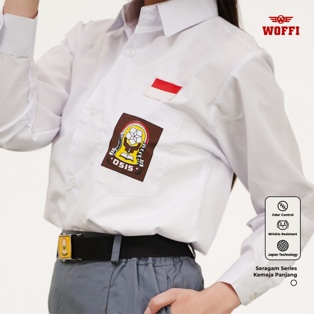 Seragam SMA Woffi Kemeja Panjang Badge Special Edition Putih