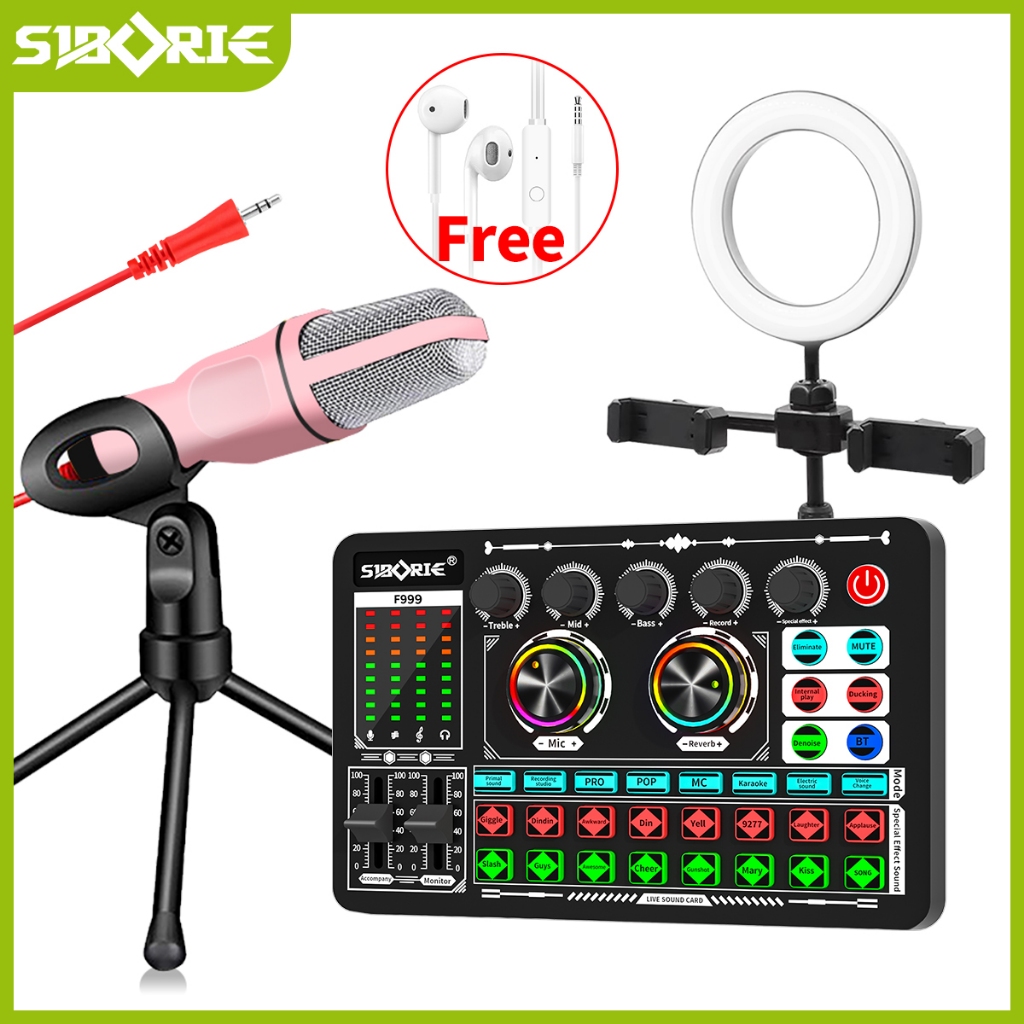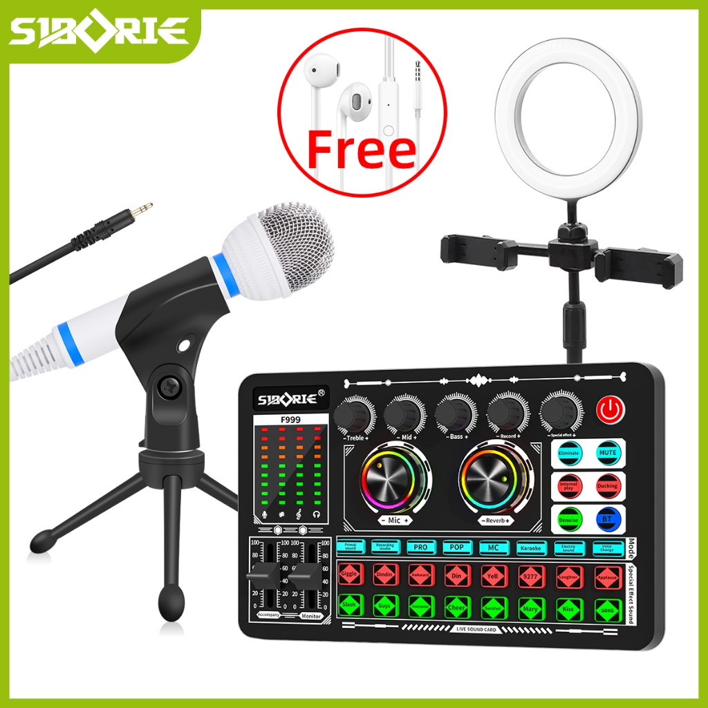 Siborie Soundcard F999+SF666/MS33/36/38 Mic+E10 Headset+Ring Light Paket Lengkap Mixer Bluetooth Sound