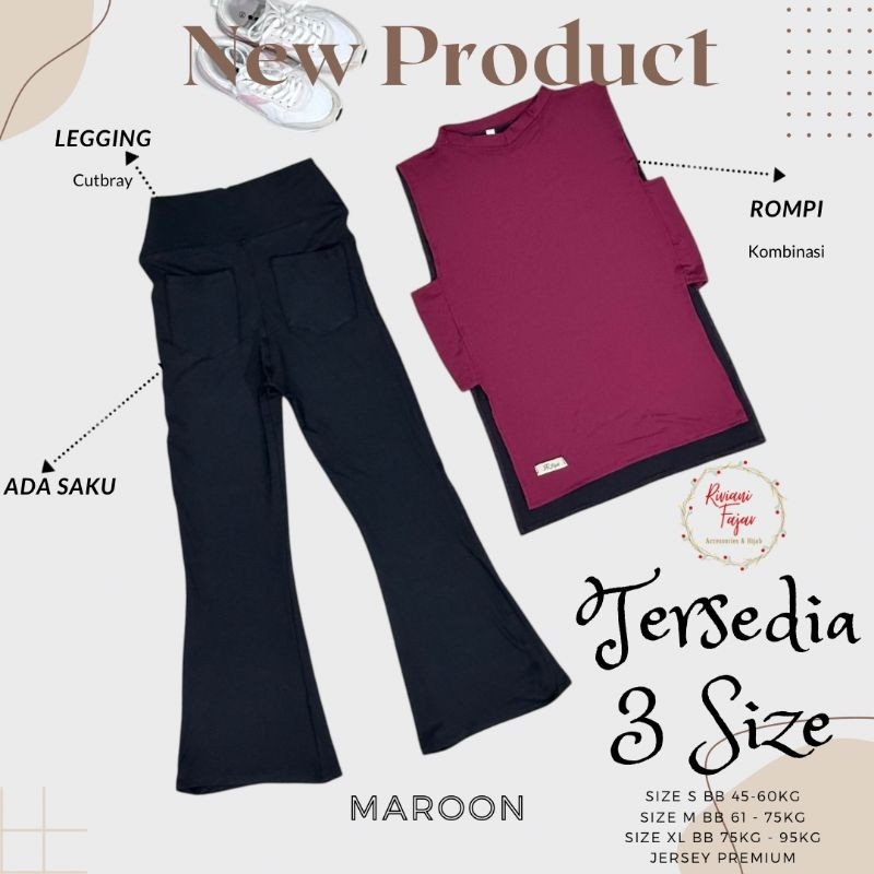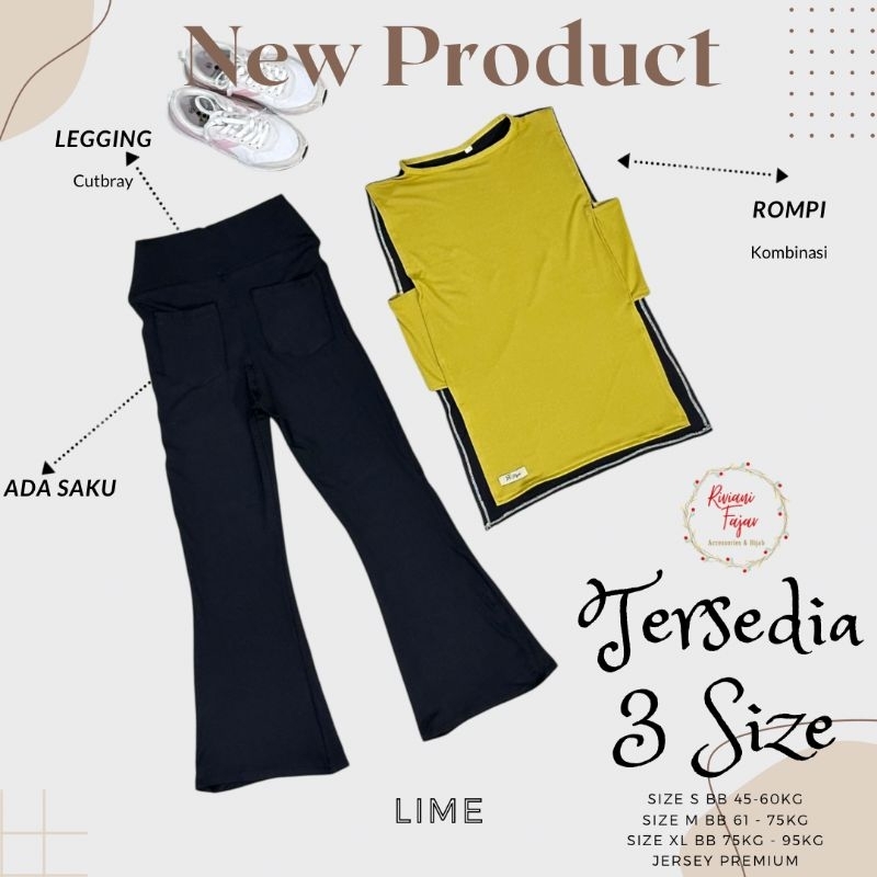 One Set Baju Olahraga 2 Warna Kombinasi Jersey Celana Cutbray Wanita Muslim Sporty