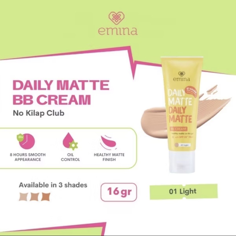 Emina Daily Matte BB Cream 16gr - Melembabkan, Matte Finish, Oil Control
