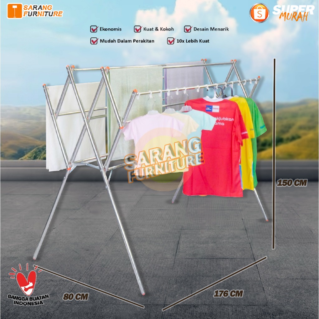 JEMURAN BAJU STAINLESS STEEL SAMUDERA 180 CM KUAT KOKOH MURAH JEMURAN JUMBO JEMURAN BAJU