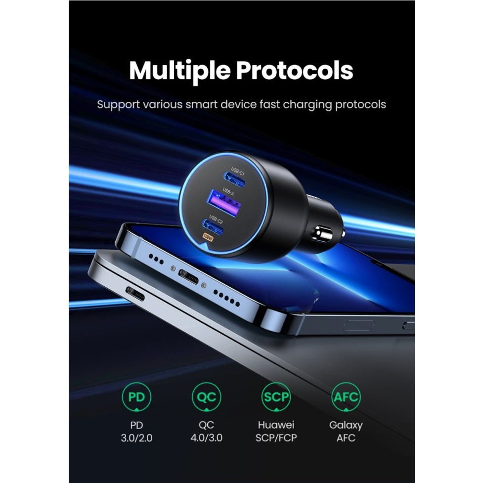 Car Charger Mobil UGREEN Multi Port USB + Type C Fast Charging 130W QC 4.0 For Phone Laptop Tablet
