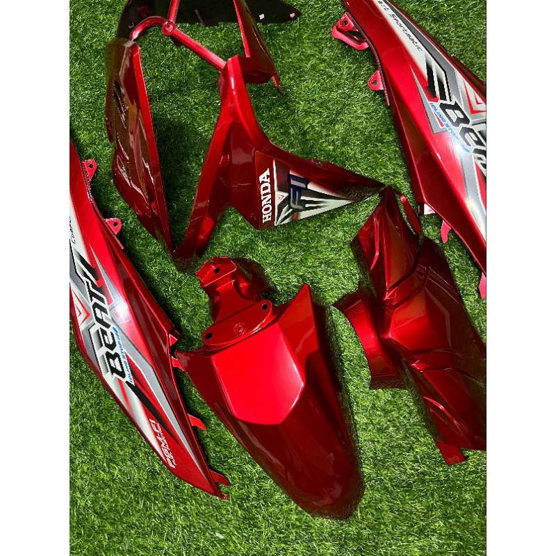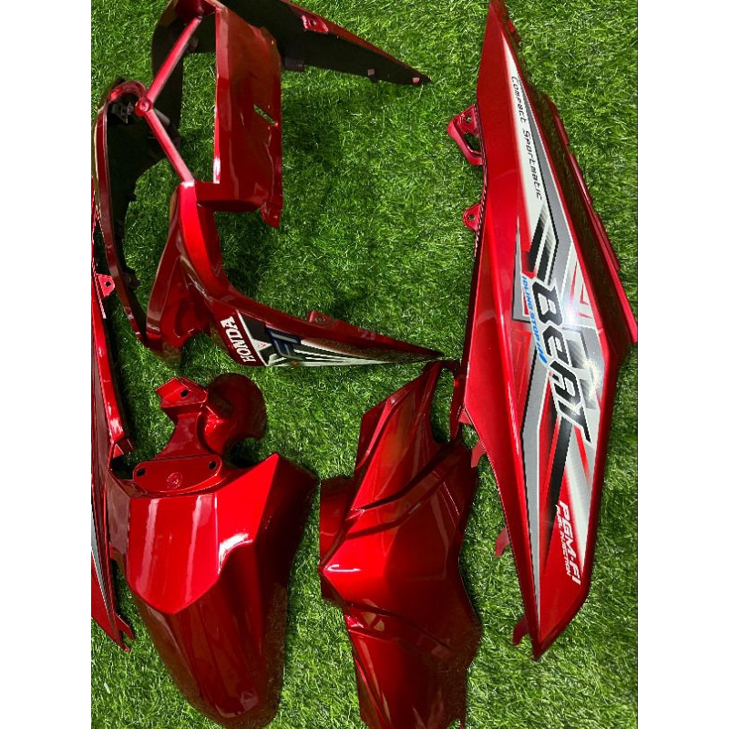 Cover full body halus Honda beat Fi warna merah marron plus striping tahun 2013-2014-2015-2016