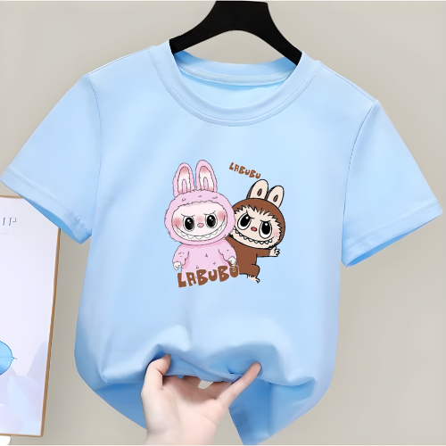 Kaos Anak Labubuu Unisex Buat Usia 2-12Tahun Pakaian Anak Perempuan & Laki Laki Atasan Oblong Distro Lengan Pendek
