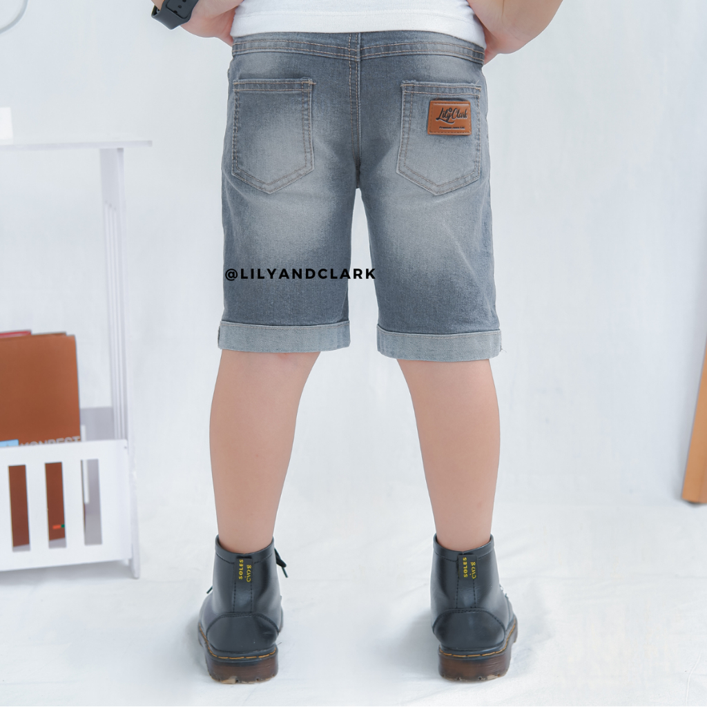 LILY AND CLARK Celana jeans pendek anak model riped warna Abu-abu JPA02